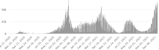 4th wave: The total of the 4th wave (beginning of September 20, 2021) amounts to 4,445 confirmed cases and 155 deaths . Screening since the start of the pandemic: 149,088 tests (+527 in 48 hours) since March 19, 2020, latest data available. Note that the very low number of people screened does not statistically make it possible to make a representative estimate of the situation in the country, which results in a low number of cases confirmed daily and a largely underestimated assessment. By comparison, the Dominican Republic has carried out more than 2.5 million tests on its population since the start of the epidemic. TOP 5 most affected municipalities in the West (2021): Delmas: 2.662 (+4); Pétion ville 2,049 (+0); Port-au-Prince 1,420 (+0); Tabarre 1,187 (+4); Croix-des-Bouquets 1,164 (+0) Confirmed cases by department (2021): West: 9,832 (2020: 6,945 cases) North: 669 cases (2020: 677 cases) Center: 1,009 cases (2020: 508 cases) Artibonitis: 819 cases (2020: 593 cases) Northeast: 399 cases (2020: 314 cases) Southeast: 740 cases (2020: 274 cases) South: 819 cases (2020: 262 cases) Northwest: 404 cases (2020: 229 cases) Grand'Anse: 843 cases (2020: 176 cases) Nippes: 246 cases (2020: 149 cases) Cumulative deaths by department (2021): West: 264 deaths (2020: 104 deaths) North: 53 deaths (2020: 34 deaths) Center: 57 deaths (2020: 13 deaths) Artibonitis: 36 deaths (2020: 39 deaths) Northeast: 6 deaths (2020: 6 deaths) South: 48 deaths (2020: 6 deaths) Southeast: 13 deaths (2020: 9 deaths) Northwest: 15 deaths (2020: 12 deaths) Grand'Anse: 7 deaths (2020: 13 deaths) Nippes: 25 deaths (2020: 5 deaths) Distribution of deaths by age (since the start of the epidemic): 0-9 years: 13 deaths 10-19 years: 9 deaths 20-29 years: 26 deaths 30-39 years: 48 deaths 40-49 years: 77 deaths 50-59 years: 122 deaths 60-69 years: 176 deaths (+2) 70-79 years: 169 deaths (+1) 80 years and over: 125 deaths Vaccination: 189,722 doses of “Spikevax” vaccine from the MODERNA Laboratory have been injected in total in Haiti since July 16, 2021, the date of the first injection through 149 open vaccination centers https://www.haitilibre.com/en/news-35051-haiti-covid-19-list-of-149-vaccination-centers-open-in-the-country.html. 120,228 Haitians (1.03% of the population) have received a first dose of vaccine and 69,494 are fully vaccinated (2 doses, 0.59% of the population). Update 5 December 2021 latest information available (source MSPP) List of 149 vaccination centers opened in Haiti (and hours) by department: (update 20 October 2021) DIASPORA: Epidemiological situation: USA: * Case since the first case (February 29, 2020): 51,435,652 cases (+144,673 in 24 hours), the day before (+154,537) * Healings: 40,406,796 healings (+63,235 in 24h), the day before (+104,048) National Healing Rate: 78.55% (-) * Death: 824,520 deaths (+1,130 in 24 hours), the day before (+2,055) National death rate: 1.60% (=) * Active cases (less deaths and recoveries): 10,204,336 cases (+80,308 in 24 hours), the day before (+48,434) Test: 783,238,887 last available data. USA: Trend of active cases: (less healings and deaths)