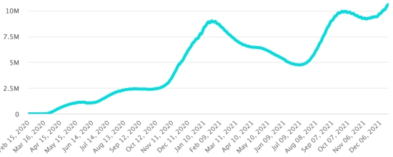 Test: 14,353,426, people tested since the first case (+43,912 in 24 hours) Vaccination: 14,435,353 million doses of vaccine injected since December 14, 2020 date of the first injection (+73,188 in 24 hours), latest data available - MSSS dated December 20, 2021) FRANCE: * Cases confirmed since the first case (January 24, 2020): 8,713,756 cases (+72,832 cases in 24 hours), the day before (+15,075) * Healings: 7,603,397 healings (+49,610), the day before (+46,878) National Healing Rate: 87.25% (-) Death: 121,927 deaths (+229 in 24 hours), the day before (+224) National death rate: 1.39% (-) * Active cases: (excluding death and cures) 988,413 (+22,993 in 24 hours), the day before (-32,027) France: Trend of active cases: (less healings and deaths)