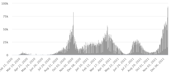 TOP 5 provinces with the most new cases in the last 24 hours: Nacional District: +198 cases (+) Santo Domingo: +118 cases (+) Santiago: +64 cases (-) San Cristóbal: 36 cases (+) La Altagracia: + 17 cases Tests (since the 1st case): 2,550,939 tests (+6,093 in 24 hours), the day before (+7,132) Vaccination: 14.03 million doses of vaccine injected since February 16, 2021, date of the first injection in the Dominican Republic (+20,000 doses injected in 24 hours). Update 23 December 2021 (last available data). QUEBEC: Warning: Center of Expertise and Reference in Public Health informs that due to statutory holidays, daily data on Covid-19 will not be updated on the 24th, 25th and December 26, 2021 and December 31, 2021, January 1 and 2, 2022. Confirmed cases since the first case (February 27, 2020): 521,126 (+10,031 in 24h), previous (+6,361) Healings: 457,630 people (+1,745 in 24 hours), previous (+1,516) Healing rate: 89.53% (-) Death: 11,658 deaths (+6 in 24h), previous (+2) Death rate: 2.28% (-) Active cases: (excluding death and recovery) 41,897 cases (+7,736 in 24h), previous (+4,843) Quebec: Trend of active cases: (less healings and deaths)