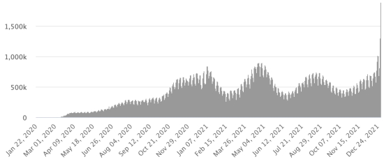Vaccination: 507.66 million doses of vaccine injected since December 14, 2020, the date of the first injection in the United States (1.35 million doses injected in 24 hours). Update December 30, 2021 (last available data).