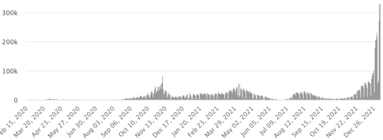 WORLD SITUATION: Epidemiological situation: On Saturday January 8, 2022, the number of people worldwide infected with the Covid-19 coronavirus and its variants since the start of the pandemic amounts to 303,931,140 cases (+2,994,099 in 24 hours), the day before ( +2,601,097). Number of contaminated countries: 221 * Healings: 258,380,260 people were cured of Covid-19 worldwide (+738,671 in 24 hours), the day before (+758,128) * Deaths: 5,498,982 people died from Covid-19 worldwide (+7,533 in 24 hours), the day before (+8,725) * Active cases (less deaths and recoveries) in the world is currently 40,051,898 cases (+2,247,895 in 24 hours), the day before (+1,834,244) Average cure rate in the world: 85.01% (-) Average death rate in the world: 1.80% (-) World: Number of daily confirmed cases: