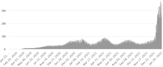 GLOBAL SITUATION 2019-2022: Epidemiological situation: Thursday January 27, 2022 the number of people infected worldwide with the Covid-19 coronavirus and its variants since the start of the pandemic (March 11, 2020) amounts to 363,418,299 cases (+3,937,685 in 24 hours ), the day before (+3,660,905) Number of countries infected: 221 *Healings: 287,779,071 people have been cured of Covid-19 worldwide (+2,928,911 in 24 hours), the day before (+2,468,190) *Deaths: 5,646,259 people died of Covid-19 worldwide (+11,244 in 24 hours), the day before (+11,384) *Active cases (minus deaths and recoveries) in the world is currently 69,992,969 cases (+997,530 in 24 hours), the day before (+1,181,331) Average cure rate in the world: 79.18% (-) Average death rate in the world: 1.55% (-) World: Number of daily confirmed cases: