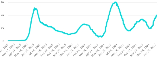 (Day-1) Vaccination: 541.41 million doses of vaccine injected since December 14, 2020, date of the first injection in the United States (+780,000 doses in 24 hours). Update February 3, 2022 (latest data available). DOMINICAN REPUBLIC: Confirmed cases since March 1, 2020: 558,936 cases (+1,017 in 24 hours) the day before (+1,399). First case (March 1, 2020) Healings: 549,219 healings (+783 in 24 hours), the day before (+2,170) National Cure Rate: 98.26% (-) Deaths: 4,315 deaths (+2 in 24 hours), the day before (+3) Death rate: 0.77% (=) Positive rate over 4 epidemiological weeks: 26.8% (-) Active cases: (excluding deaths and recoveries) 5,402 cases (+232 in 24 hours) the day before (-774) Dominican Republic: Trend of active cases: (minus recoveries and deaths)
