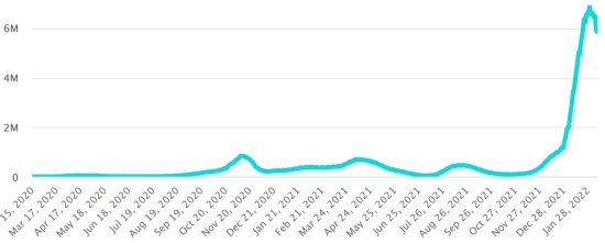 Test: 16,347,051 people tested since the first case (+23,135 in 24 hours) Vaccination: 18,061,383 doses of vaccine injected since December 14, 2020, date of the first injection (+35,044 doses in 24 hours), latest data available - MSSS as of February 9, 2022) FRANCE: Warning: Santé publique France did not update the data for Wednesday, February 9. The figures below are therefore the latest available (Tuesday 8 February 2022). *Confirmed cases since the first case (January 24, 2020): 21,039,639 cases (+ 235,267 cases in 24 hours), the day before (235,267) *Healings: 15,042,541 healings (+435,750 in 24h), previous (+435,750) National Cure Rate: 71.49% (+) Deaths: 133,614 deaths (+691 in 24 hours), the day before (+691) Death rate: 0.63% (=) Active Cases: 5,863,484 (-201,174 in 24h), the day before (-201,174) Test: 238,632,994 (last data available February 8, 2022) France: Trend of active cases: (minus recoveries and deaths)