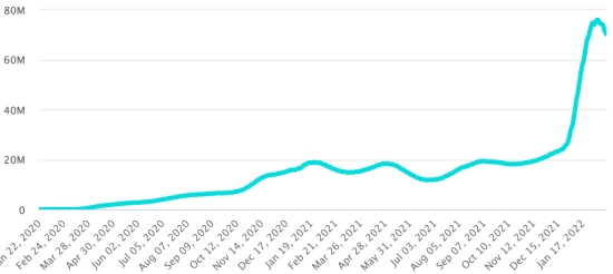 GLOBAL SITUATION 2019-2022: Epidemiological situation: Friday, February 18, 2022 the number of people infected worldwide with the Covid-19 coronavirus and its variants since the start of the pandemic (March 11, 2020) amounts to 420,597,131 cases (+2,152,739 in 24 hours ), the day before (+2,109,253) Number of countries infected: 221 *Healings: 344,603,767 people have been cured of Covid-19 worldwide (+2,662,153 in 24 hours), the day before (+2,722,680) *Deaths: 5,883,361 people died of Covid-19 worldwide (+13,109 in 24 hours), the day before (+11,851) *Active cases (minus deaths and recoveries) in the world is currently 70,110,003 cases (-522,523 in 24 hours), the day before (-625,278) Average cure rate in the world: 81.93% (+) Average mortality rate in the world: 1.39% (-) World: Active cases trend: (minus recoveries and deaths)