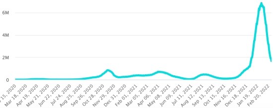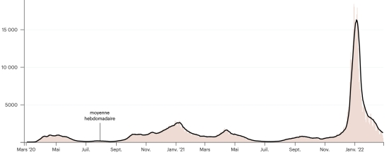Test: 16,703,680 people tested since the first case (+45,000 in 72 hours) Vaccination: 18,422,302 doses of vaccine injected since December 14, 2020, date of the first injection (+40,040 doses in 72 hours), latest data available - MSSS as of February 28, 2022) FRANCE: *Confirmed cases since the first case (January 24, 2020): 22,702,815 cases (+56,083 cases in 24 hours), previous (+42,600) *Healings: 20,901,272 healings (+280,960 in 24h), previous (+45,925) National Cure Rate: 92.06% (=) Deaths: 138,367 deaths (+232 in 24 hours), previous (+76) Death rate: 0.60% (=) Active Cases: 1,663,176 (-221,784 in 24h), previous (-3,401) Test: 246,629,975 (last data available February 27, 2022) France: Trend of active cases: (minus recoveries and deaths)