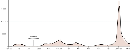 (average weekly trend) Test: 16,836,676 people tested since the first case (+13,414 in 24 hours) Vaccination: 18,497,524 doses of vaccine injected since December 14, 2020, date of the first injection (+6,563 doses in 24 hours), latest data available - MSSS as of March 10, 2022) FRANCE: *Confirmed cases since the first case (January 24, 2020): 23,308,880 cases (+74,818 cases in 24 hours), previous (+69,190) *Healings: 22,011,308 healings (+82,291 in 24h), previous (+92,178) National Cure Rate: 94.43% (+) Deaths: 139,880 deaths (+107 in 24 hours), previous (+155) Death rate: 0.60% (=) Active Cases: 1,157,692 (-7,580 in 24h), previous (+23,310) Test: 246,629,975 (last data available February 27, 2022) France: Number of daily confirmed cases: