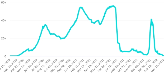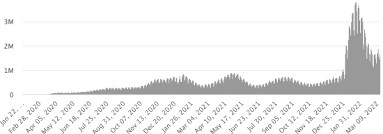 Vaccination: 557.46 million doses of vaccine injected since December 14, 2020, the date of the first injection in the United States (+160,000 doses in 24 hours). Updated March 15, 2022 (latest data available).