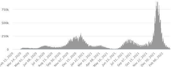 World: Number of daily confirmed cases: