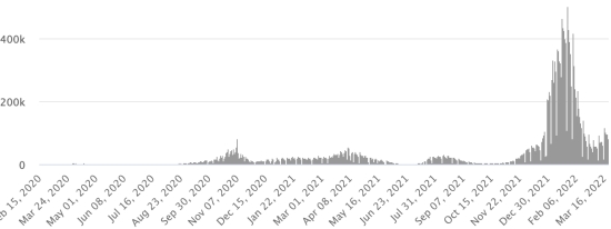 (Day-1) Vaccination: 11.12 billion doses of vaccine injected (+10 million doses injected in 24 hours. Updated March 20, 2022 (latest data available). HAITI: According to the Ministry of Public Health, +15 new cases of Covid-19 and its variants have been confirmed in Haiti as of March 18, 2022 (latest partial data available ) for a total of 30,509 confirmed cases throughout the national territory (48.7% women and 51.3% men), since the first case (March 19, 2020 https://www.haitilibre.com/en/news-30319-haiti-health-origin-of-the-first-2-cases-of-covid-19-in-haiti.html ). Previous update (+16 cases as of March 16, 2022). Healings: 27,492 (+155) Cure rate: 90.11% (+) Deaths: 827 deaths (+0) () Death rate: 2.71% (=) 5th Wave (Omicron Dominant): Total of the 5th wave (starting December 27, 2021) 4,515 confirmed cases and 61 deaths Haiti: Active Cases Trend: (less recoveries and deaths)