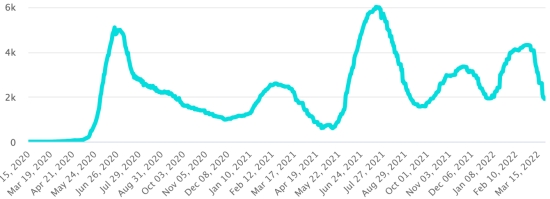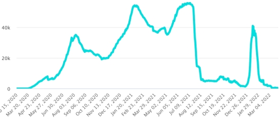 (Day-1) Vaccination: 560.13 million doses of vaccine injected since December 14, 2020, date of the first injection in the United States (+160,000 doses in 24 hours). Updated March 28, 2022 (latest data available). DOMINICAN REPUBLIC: Confirmed cases since March 1, 2020: 577,880 cases (+39 in 24 hours) the day before (+100 in 24 hours). First case (March 1, 2020) Healings: 573,254 healings (+48 in 24 hours), the day before (+165) National Cure Rate: 99.19% (-) Deaths: 4,375 deaths (+0), previous (+0) Death rate: 0.75% (=) Positivity rate over 4 epidemiological weeks: 1.12% (+) Active cases: (excluding deaths and recoveries) 251 cases (-13 in 24 hours) the day before (+35) Dominican Republic: Trend of active cases: (minus recoveries and deaths)