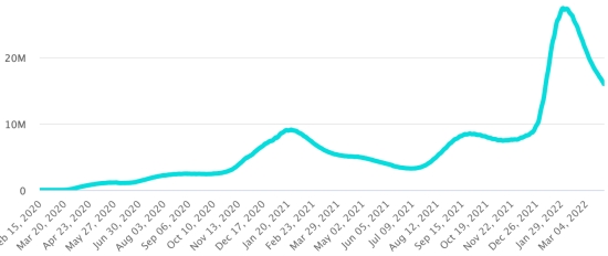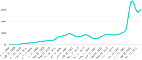 (Day-1) Vaccination: 11.26 billion doses of vaccine injected (+20 million doses injected in 24 hours. Update March 28, 2022 (latest data available). HAITI: Warning: The Ministry of Public Health and Population (MSPP) did not make available after March 22, 2022 daily data on the Covid-19 situation in Haiti. Accordingly, the data below on the situation in Haiti are the latest available. According to the Ministry of Public Health, +13 new cases of Covid-19 and its variants have been confirmed in Haiti as of March 22, 2022 (latest partial data available ) for a total of 30,522 confirmed cases throughout the national territory (48.7% women and 51.3% men), since the first case (March 19, 2020 https://www.haitilibre.com/en/news-30319-haiti-health-origin-of-the-first-2-cases-of-covid-19-in-haiti.html ). Previous update (+15 cases as of March 18, 2022). Healings: 27,960 (+468) Cure rate: 91.60% (+) Deaths: 833 deaths (+6) (West +2, Center +1, South-East+1, Artibonite +2) Death rate: 2.72% (+) 5th Wave (Omicron Dominant): Total of the 5th wave (starting December 27, 2021) 4,528 confirmed cases and 67 deaths Haiti: Active Cases Trend: (less recoveries and deaths)