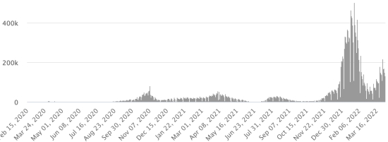 (Day-1) Vaccination: 11.39 billion doses of vaccine injected (+20 million doses injected in 24 hours. Update April 3, 2022 (latest data available). HAITI: Warning: The Ministry of Public Health and Population (MSPP) did not make available after March 26, 2022 daily data on the Covid-19 situation in Haiti. Accordingly, the data below on the situation in Haiti are the latest available. According to the Ministry of Public Health, +16 new cases of Covid-19 and its variants have been confirmed in Haiti as of March 26, 2022 (latest partial data available ) for a total of 30,545 confirmed cases throughout the national territory (48.7% women and 51.3% men), since the first case (March 19, 2020 https://www.haitilibre.com/en/news-30319-haiti-health-origin-of-the-first-2-cases-of-covid-19-in-haiti.html ). Previous update (+7 cases as of March 24, 2022). Healings: 28,431 (+162) Cure rate: 93.07% (+) Deaths: 833 deaths (+0) () Death rate: 2.72% (=) 5th Wave (Omicron Dominant): Total of the 5th wave (starting December 27, 2021) 4,551 confirmed cases and 67 deaths Screening since the start of the pandemic: 188,012 tests (+690 in 2 days) since March 19, 2020, latest data available. Note that the very small number of people screened every day at the national level out of a population estimated at 11.6 million citizens, does not statistically allow us to make a representative estimate of the situation in Haiti, which translates into a < B>number of daily confirmed cases largely underestimated. TOP 5 of the most affected municipalities in the West (2022): Delmas: 740 (+1); Petion-ville 624 (+3); Port-au-Prince 406 (+0); Tabarre 287 (+0); Cross-Bouquets 239 (+1) Confirmed cases by department (2022 / 2021 / 2020): West: 2022: 2,552 cases; (2021: 9.890); (2020: 6,945 cases) North: 2022: 267 cases; (2021: 664); (2020: 677 cases) Center: 2022: 226 cases; (2021: 1.001); (2020: 508 cases) Artibonitis: 2022: 184 cases; (2021: 855); (2020: 593 cases) Northeast: 2022: 148 cases; (2021: 404); (2020: 314 cases) Southeast: 2022: 262 cases; (2021: 768); (2020: 274 cases) South: 2022: 214 cases; (2021: 891); (2020: 262 cases) North West: 2022: 255 cases; (2021: 383); (2020: 229 cases) Grand'Anse: 2022: 173 cases; (2021: 861); (2020: 176 cases) Nippes: 2022: 39 cases; (2021: 249) (2020: 149 cases) Cumulative deaths by department (2022-2021): West: 295 deaths (2020: 104 deaths) North: 54 deaths (2020: 34 deaths) Center: 79 deaths (2020: 13 deaths) Artibonite: 42 deaths (2020: 39 deaths) North East: 7 deaths (2020: 6 deaths) South: 51 deaths (2020: 6 deaths) Southeast: 15 deaths (2020: 9 deaths) North West: 15 deaths (2020: 12 deaths) Grand'Anse: 7 deaths (2020: 13 deaths) Nippes: 27 deaths (2020: 5 deaths) Distribution of deaths by age (since the start of the epidemic): 0-9 years: 15 deaths 10-19 years: 10 deaths 20-29 years: 31 deaths 30-39 years: 56 deaths 40-49 years: 80 deaths 50-59 years: 134 deaths 60-69 years: 187 deaths 70-79 years: 183 deaths 80 years and over: 137 deaths Vaccination: 163,369 Haitians (1.4% of the population) +2,205 in 6 days have received a 1st dose of vaccine since July 16, 2021, date of the first injection through 149 open vaccination centers and 111,914 Haitians are fully vaccinated (2 doses, 0.96% of the population) +1.585 in 6 days. Update March 22, 2022 latest information available (source MSPP). List of the 149 Vaccination Centers open in Haiti (and hours) by department: (updated October 20, 2021, latest information available) DIASPORA: Epidemiological situation : USA: *Cases since the first case (February 29, 2020): 81,832,612 cases (+6,241 in 24 hours), the day before (+12,856) *Healings: 65,676,514 healings (+150,540), the day before (+142,983) National Cure Rate: 80.25% (+) *Deaths: 1,008,198 deaths (+39), the day before (+170) National death rate: 1.23% (=) *Active cases (minus deaths and recoveries): 15,147,900 (-144,338), yesterday (-130,297) USA: Number of daily confirmed cases:
