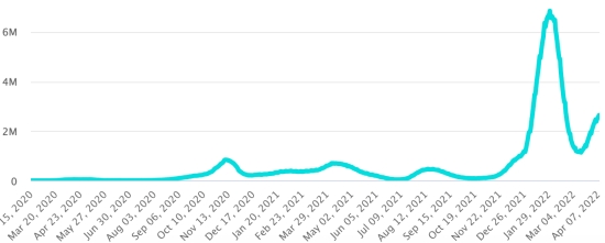 (average weekly trend) Vaccination: 18,818,996 doses of vaccine injected since December 14, 2020, date of the first injection (+35,199 doses in 24 hours), latest data available - MSSS as of April 8, 2022) FRANCE: *Confirmed cases since the first case (January 24, 2020): 26,698,031 cases (+148,768 cases in 24 hours), previous (+158,792) *Healings: 23,912,721 healings (+97,965), previous (+97,474) National Cure Rate: 89.56% (-) Deaths: 143,156 (+139 in 24h), previous (+105) Death rate: 0.53% (=) Active Cases: 2,642,154 (+50,664 in 24h), previous (+61,213) France: Number of daily confirmed cases