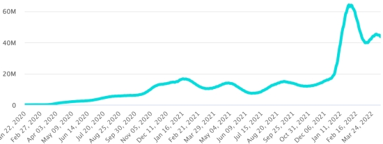 GLOBAL SITUATION 2019-2022: Epidemiological situation: Wednesday l April 13, 2022 the number of people infected worldwide with the Covid-19 coronavirus and its variants since the start of the pandemic (March 11, 2020) amounts to 501,189,739 cases (+1,119,224 in 24 hours ), the day before (+857.186) Number of infected countries: 225 *Healings: 451,376,990 people have been cured of Covid-19 worldwide (+1,427,156 in 24 hours), the day before (+1,155,223) *Deaths: 6,209,749 people have died of Covid-19 worldwide since the start of the pandemic (+3,569 in 24 hours), the day before (+2,719) *Active cases (less deaths and recoveries) in the world is currently 43,603,000 cases (-311,501 in 24 hours), the day before (-300,756) Average cure rate in the world: 90.06% (+) Average mortality rate in the world: 1.23% (-) World: Active cases trend: (minus recoveries and deaths)