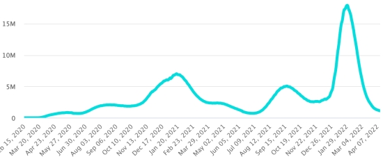 (Day-1) Vaccination: 11.47 billion doses of vaccine injected (+10 million doses injected. Updated April 11, 2022 (latest data available). HAITI: Warning: The Ministry of Public Health and Population (MSPP) did not make available after April 6, 2022 daily data on the Covid-19 situation in Haiti. As a result, the data below on the situation in Haiti is the latest available. According to the Ministry of Public Health, +10 new cases of Covid-19 and its variants have been confirmed in Haiti as of April 6, 2022 (latest partial data available ) for a total of 30,585 confirmed cases throughout the national territory (48.7% women and 51.3% men), since the first case (March 19, 2020 hhttps://www.haitilibre.com/en/news-30319-haiti-health-origin-of-the-first-2-cases-of-covid-19-in-haiti.html ). Previous update (+8 cases as of April 2, 2022). Healings: 29,082 (+107) Cure rate: 95.08% (+) Deaths: 835 deaths (+2) (West +2) Death rate: 2.73% (+) 5th Wave (Omicron Dominant): Total of the 5th wave (beginning of December 27, 2021) 4,591 confirmed cases and 69 deaths Screening since the start of the pandemic: 191,478 tests (+1,242 in 4 days) since March 19, 2020, latest data available. Note that the very small number of people screened every day at the national level out of a population estimated at 11.6 million citizens, does not statistically allow us to make a representative estimate of the situation in Haiti, which translates into a < B>number of daily confirmed cases largely underestimated. TOP 5 of the most affected municipalities in the West (2022): Delmas: 744 (+3); Petion-ville 624 (+0); Port-au-Prince 407 (+0); Tabarre 288 (+0); Cross-Bouquets 242 (+1) Confirmed cases by department (2022 / 2021 / 2020): West: 2022: 2,563 cases; (2021: 9.890); (2020: 6,945 cases) North: 2022: 269 cases; (2021: 664); (2020: 677 cases) Center: 2022: 230 cases; (2021: 1.001); (2020: 508 cases) Artibonitis: 2022: 188 cases; (2021: 855); (2020: 593 cases) Northeast: 2022: 148 cases; (2021: 404); (2020: 314 cases) Southeast: 2022: 268 cases; (2021: 768); (2020: 274 cases) South: 2022: 216 cases; (2021: 891); (2020: 262 cases) North West: 2022: 263 cases; (2021: 383); (2020: 229 cases) Grand'Anse: 2022: 176 cases; (2021: 861); (2020: 176 cases) Nippes: 2022: 39 cases; (2021: 249) (2020: 149 cases) Cumulative deaths by department (2022-2021): West: 296 deaths (2020: 104 deaths) North: 54 deaths (2020: 34 deaths) Center: 79 deaths (2020: 13 deaths) Artibonite: 42 deaths (2020: 39 deaths) North East: 7 deaths (2020: 6 deaths) South: 51 deaths (2020: 6 deaths) Southeast: 15 deaths (2020: 9 deaths) North West: 15 deaths (2020: 12 deaths) Grand'Anse: 7 deaths (2020: 13 deaths) Nippes: 27 deaths (2020: 5 deaths) Distribution of deaths by age (since the start of the epidemic): 0-9 years: 15 deaths 10-19 years: 10 deaths 20-29 years: 31 deaths 30-39 years: 56 deaths 40-49 years: 80 deaths 50-59 years: 135 deaths (+1) 60-69 years: 187 deaths 70-79 years: 184 deaths (+1) 80 years and over: 137 deaths Vaccination: 163,369 Haitians (1.4% of the population) +2,205 in 6 days have received a 1st dose of vaccine since July 16, 2021, date of the first injection through 149 open vaccination centers and 111,914 Haitians are fully vaccinated (2 doses, 0.96% of the population) +1.585 in 6 days. Update March 22, 2022 latest information available (source MSPP). List of the 149 Vaccination Centers open in Haiti (and hours) by department: (updated October 20, 2021, latest information available) DIASPORA : Epidemiological situation: USA: *Cases since the first case (February 29, 2020): 82,133,342 cases (+30,275 in 24 hours), the day before (+40,078) *Healings: 80,015,081 healings (+55,625 in 24 hours), the day before (+50,936) National Cure Rate: 97.42% (+) *Deaths: 1,013,044 deaths (+583 in 24 hours), the day before (+310) National death rate: 1.23% (=) *Active cases (minus deaths and recoveries): 1,105,217 (-25,933 in 24 hours), the day before (-11,168) USA: Trend active cases: (minus recoveries and deaths)