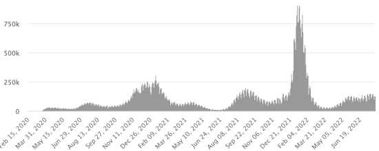 GLOBAL SITUATION 2019-2022: Epidemiological situation: Friday July 29, 2022 the number of people infected worldwide with the Covid-19 coronavirus and its variants since the start of the pandemic (March 11, 2020) amounts to 579,881,336 cases (+1,067,329 in 24 hours ), the day before (+1,373,075 in 24 hours) Number of infected countries: 228 *Healings: 549,770,024 people have been cured of Covid-19 worldwide (+971,723 in 24 hours), the day before (+1,544,010 in 24 hours) *Deaths: 6,415,047 people have died of Covid-19 worldwide since the start of the pandemic (+2,652 in 24 hours), the day before (+4,499 in 24 hours) *Active cases (minus deaths and recoveries) in the world is currently 23,696,265 cases (+92,954 in 24 hours), the day before (- 175,434 24 hours) Cure rate in the world: 94.80% (-) Death rate in the world: 1.10% (=) World: Number of daily confirmed cases: