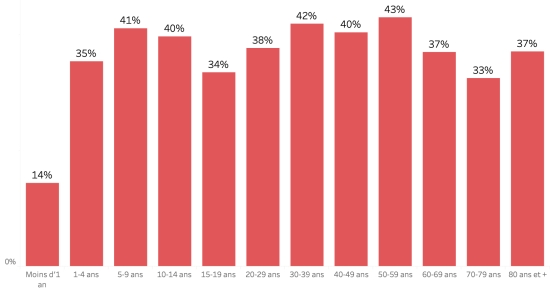 Distribution and deviations of suspected cases, total since October 3 (in 24 hours): Less than 1 year: +345(+1) 1-4 years: 3,790 cases (+88) 5-9 years: 2,744 cases (+19) 10-14 years old: 1,333 cases (+12) 15-19 years old: 980 cases (+10) 20-29 years old: 2,845 cases (+16) 30-39 years old: 2,716 cases (+18) 40-49 years old: 1,848 cases (+9) 50-59 years old: 1,314 cases (+11) 60-69 years old: 829 cases (+9) 70-79 years old: 422 cases (+3) 80 and + 72 cases () Men: 57.57% men (-); Women 42.43% (+) Positivity rate by age segment: