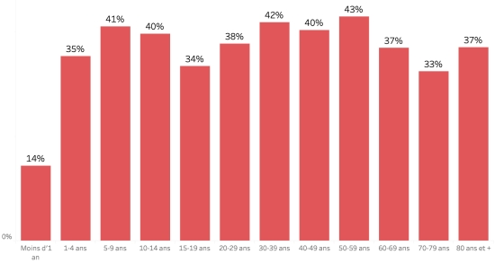 Distribution and deviations of suspected cases, total since October 3 (in 24 hours): Less than 1 year: +355 (+6) 1-4 years: 3,872 cases (+78) 5-9 years: 2,830 cases (+52) 10-14 years old: 1,362 cases (+19) 15-19 years old: 1,007 cases (+16) 20-29 years old: 2,923 cases (+49) 30-39 years old: 2,780 cases (+35) 40-49 years old: 1,894 cases (+28) 50-59 years old: 1,351 cases (+22) 60-69 years old: 851 cases (+18) 70-79 years old: 434 cases (+7) 80 and +: 73 cases (unchanged for 24 hours, update not available) Men: 57.42% men (-); Women 42.58% (+) Positivity rate by age segment: