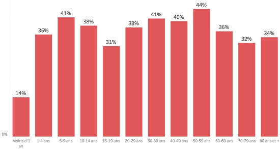 Distribution and deviations of suspected cases, total since October 3 (in 24 hours): Less than 1 year: +399 (-12) ** 1-4 years: 4,400 cases (-24)** 5-9 years: 3,111 cases (-102)** 10-14 years: 1,483 cases (-39)** 15-19 years old: 1,114 cases (-24)** 20-29 years old: 3202 cases (-52)** 30-39 years old: 2,944 cases (-51)** 40-49 years old: 2,047 cases (-44)** 50-59 years old: 1,472 cases (-27)** 60-69 years old: 945 cases (-12)** 70-79 years old: 471 cases (-17)** 80 and +: 88 cases (+10) ** MSPP correction Men: 57.01% men (-); Women 42.99% (+) Positivity rate by age segment: