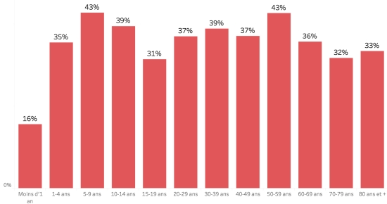 January 19, 2023: (latest data available) Data calculated since the first confirmed case (October 3, 2022) Total suspected cases: 25,961 cases +313 (+1.22%) in 24 hours (the day before: +82 in 24 hours) Total confirmed cases: 1,938 cases +2 (%) in 24 hours (previous: +35 in 24 hours). Total suspected and confirmed hospitalized cases: 21,696 cases +289 (+1.35%) in 24 hours, (the day before +73 in 24 hours) Total deaths: 502 deaths ((312 institutional (+unavailable) and 184 community (+unavailable)) +0 deaths (%) in 24 hours, (the day before: +unavailable). Partial assessment of cholera in Haiti according to data from the Department of Epidemiology, Laboratories and Research of the Ministry of Public Health and Population (MSPP) Weekly positivity rate: Difficulties do not allow the MSPP to generate an usable 2023 graph. Distribution and deviations of suspected cases, total since October 3 (in 24 hours): Less than 1 year: + 452 (+3) 1-4 years: 5,077 cases (+72) 5-9 years: 3,679 cases (+72) 10-14 years old: 1,708 cases (+27) 15-19 years old: 1,293 cases (+14) 20-29 years old: 3,573 cases (+31) 30-39 years old: 3,254 cases (+21) 40-49 years old: 2,277 cases (+18) 50-59 years old: 1,681 cases (+22) 60-69 years old: 1,101 cases (+25) 70-79 years old: 570 cases (+8) 80 years and over: 98 cases (not available) Men: 56.55% men (-); Women 43.45% (+) Positivity rate by age segment: