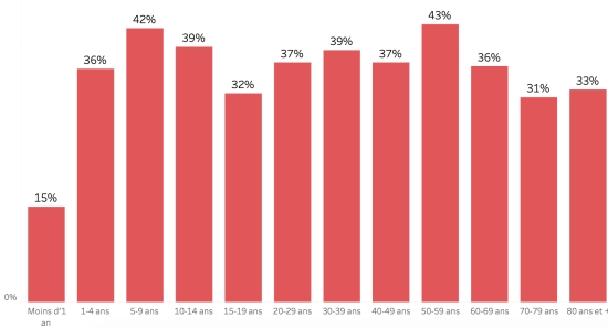 Distribution and deviations of suspected cases, total since October 3 (in 24 hours): Less than 1 year: + 477 (+17) 1-4 years: 5,270 cases (+40) 5-9 years: 3,813 cases (+78) 10-14 years old: 1,770 cases (+49) 15-19 years old: 1,342 cases (+28) 20-29 years old: 3,711 cases (+93) 30-39 years old: 3,337 cases (+51) 40-49 years old: 2,354 cases (+45) 50-59 years old: 1,744 cases (+42) 60-69 years old: 1,141 cases (+26) 70-79 years old: 598 cases (+25) 80 years and over: 98 cases cases (not available) Men: 56.49% men (=); Women 43.51% (=) Positivity rate by age segment: