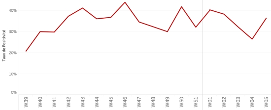 February 5, 2023: (latest data available) Data calculated since the first confirmed case (October 3, 2022) Total suspected cases: 30,462 cases +364 in 24 hours (+1.20%), the day before +339 in 24 hours Total confirmed cases: 2,107 cases +0* in 24 hours (%), the day before +0* in 24 hours Total suspected and confirmed hospitalized cases: 26,033 cases +341 in 24 hours (+1.32%), the day before +326 in 24 hours Total deaths: 560** deaths ((365 institutional (+0) and 195 community (+0)) +0 in 24 hours (%), the day before: +0 in 24 hours * No test results available for 48 hours ** Not updated for 72h Partial assessment of cholera in Haiti according to data from the Department of Epidemiology, Laboratories and Research of the Ministry of Public Health and Population (MSPP). Weekly positivity rate: