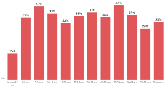 Distribution and deviations of suspected cases, total since October 3: Less than 1 year: + 558 (+10) 1-4 years: 6,106 cases (86) 5-9 years: 4,499 cases (+64) 10-14 years old: 2,124 cases (+40) 15-19 years old: 1,561 cases (+22) 20-29 years old: 4,156 cases (+43) 30-39 years old: 3,663 cases (+26) 40-49 years old: 2,622 cases (+19) 50-59 years old: 1,964 cases (+33) 60-69 years old: 1,301 cases (+16) 70-79 years old: 709 cases (+5) 80 years and over: 98 cases cases (not available) Men: 55.90% men (=); Women 44.10% (=) Positivity rate by age segment:
