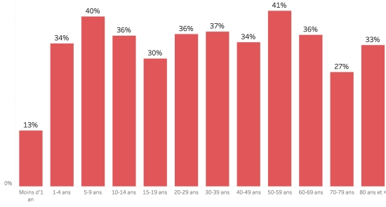March 16, 2023: (latest data available, previous Ministry bulletin March 11, 2023 https://www.haitilibre.com/en/news-39133-haiti-cholera-daily-bulletin-133.html Data calculated since the first confirmed case (October 3, 2022) Total suspected cases: 37,599 cases +20* in 24 hours (+0.99%), previous +371 in 24 hours Total confirmed cases: 2,519 cases +4 (%), previous +0** Total hospitalized cases (suspected and confirmed): 32,360 cases +20 in 24 hours (%), previous +176 in 24 hours Total deaths: 632*** deaths ((420 institutional (+1) and 212 community (+0)) +1 (%), previous: +7 *Partial and incomplete update **No tests performed or published ***The Ministry has not updated this data Partial assessment of cholera in Haiti according to data from the Department of Epidemiology, Laboratories and Research of the Ministry of Public Health and Population (MSPP). Distribution and deviations of suspected cases, total since October 3: Less than 1 year: + 800 (+2) 1-4 years: 7,654 cases (+3) 5-9 years: 5,482 cases (+4) 10-14 years old: 2,673 cases (+2) 15-19 years old: 1,971 cases (+1) 20-29 years old: 4,953 cases (+4) 30-39 years old: 4,278 cases (+2) 40-49 years old: 3,125 cases (+0) 50-59 years old: 2,344 cases (+0) 60-69 years old: 1,640 cases (+2) 70-79 years old: 913 cases (+0) 80 years and over: 98 cases cases (The MSPP no longer updates this data) Men: 55.21% men (=); Women 44.79% (=) Positivity rate by age segment: