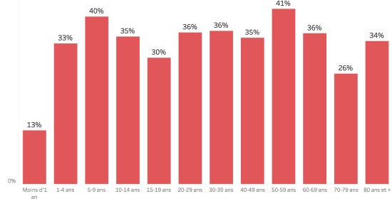 March 26, 2023: (latest data available, previous Ministry bulletin March 24, 2023 https://www.haitilibre.com/en/news-39216-haiti-cholera-daily-bulletin-140.html Data calculated since the first confirmed case (October 3, 2022) Total suspected cases: 38.479 cases +26 in 24 hours (+0.06%), previous +30 in 24 hours Total confirmed cases: 2,576 cases +2 (%), previous +8 Total hospitalized cases (suspected and confirmed): 33,076 cases +24 in 24 hours (%), previous +91 in 24 hours Total deaths: 642 deaths ((429 institutional (+1) and 213 community (+1)) +0 (%), previous: +2 Partial assessment of cholera in Haiti according to data from the Department of Epidemiology, Laboratories and Research of the Ministry of Public Health and Population (MSPP). Distribution and deviations of suspected cases, total since October 3: (Partial and incomplete results) Less than 1 year: + 837 (+5) 1-4 years: 7,835 cases (+9) 5-9 years: 5,593 cases (+1) 10-14 years old: 2,746 cases (+3) 15-19 years old: 2,023 cases (+1) 20-29 years old: 5,038 cases (+2) 30-39 years old: 4,357 cases (+3) 40-49 years old: 3,173 cases (+0) 50-59 years old: 2,394 cases (+1) 60-69 years old: 1,670 cases (+1) 70-79 years old: 937 cases (+0) 80 years and over: 98 cases cases (The MSPP no longer updates this data) Men: 55.09% men (-); Women 44.91% (+) Positivity rate by age segment: