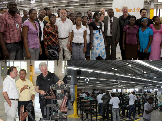 The former U.S. President Bill Clinton visited Wednesday, accompanied by Mariano Fernández Amunátegui, Special Envoy of UN Secretary General and Head of the Minustah a a production plant a shoes of the brand "Timberland" in the Northeast of Haiti, in the free zone of Ouanaminthe at the border with the Dominican Republic. Timberland's vice president of supply chain, Gareth Brooks, reported that "since the factory opened in June 2010, we have recruited and trained nearly 150 employees to make handsewn uppers. Our expansion within the facility continues, and next spring we plan to open our first cut-to-box manufacturing line which will produce our first 'Made In Haiti' classic handsewns [...] We're making products that require specific skills to create [...] Haiti doesn't have a heritage of shoemaking, but our dedicated Haitian staff have demonstrated a willingness to learn."