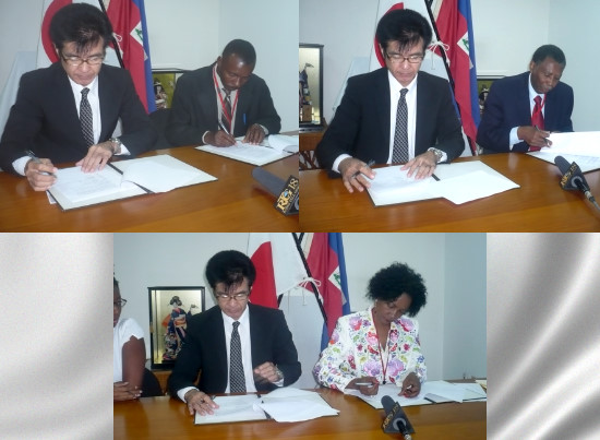 Wednesday, Kentaro Minami, Ambassador of Japan accredited in Haiti has signed 3 projects (ODPSA-UNICC-PROFAMIL) for a value of over 300,000 U.S. dollars in the fields of agriculture, education and health. Was present at the signing session Elo Belizaire Coordinator of the Organization for the Development of the Peasants of Salmadère (ODPSA), Violette Pierre-Louis, Coordinator of the Union of Concerned Christians, of the NGO INICC for the education project and Dr. Gadner Michaud Executive Director of the NGO PROFAMIL for the health project.