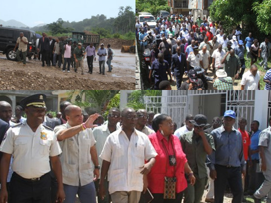 Friday, Prime Minister, Laurent Lamothe, accompanied among others by, Marie Carmele Rose-Anne Auguste, the Minister Delegate in charge of human rights and the fight against extreme poverty, Senator of Nippes Jocelerme Privert and the Deputies Pierre Luberne, Wilner Guervil and Ulrick Filocsaint of the majority bloc in the Lower House "Parliamentarian for Stability and Progress" (PSP), made a supervision visit of sites under construction of the municipality of Baradères, within the framework of infrastructure works implemented by the Government in the department of Nippes, especially in urban regeneration and construction of houses. The Head of Government visited the work of correction, containment, clogging and gabionade, which are performed in Baradères River, which in flooded, generally causes major damage. He also visited the construction site of the Community Referral Hospital of the town. More than a hundred houses are being renovated under the program "Ranje kay katye". In addition, the project of concreting of the municipality, electrification and lighting of his main roads are being executed. "Despite the satisfaction of Baraderois regarding the completion of this work, it is not enough. Other resources will be mobilized to implement other types of projects for the most vulnerable segment of the population to which the President and I are dedicated and committed to change their living conditions," declared Laurent Lamothe.