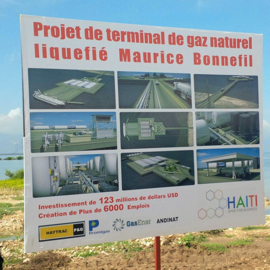 As part of the promotion of investments, the Investment Facilitation Center (CFI) announced that Haytrac Power & Gas has developed a project of Terminal for storage and supply of Liquefied Natural Gas (LNG), on the site of Tirobu, located on Route Nationale #1 in front of the Training Center Maurice Bonnefil. This project, that meets international environmental standards, is estimated at 103 million U.S. dollars. This project will take place in two stages : 1. The construction of a storage terminal of 15,000 m3 fopr the importation of liquefied natural gas at the level of Cité Soleil and Morne à Cabrit, capacity that will be doubled later. 2. Construction of a pipeline to supply the industrial area of Port au Prince, in order to supply the plants and make them more productive in respect of the environment.