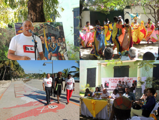 Friday, as part of the ceremony of swearing in of jacmelien Committee of Bolivarian Movement, which was held in the old school of the Sisters of St. Joseph of Cluny, the Ambassador of Venezuela to Haiti, Pedro Antonio Canino Gonzalez accompanied by the authorities of the city of Jacmel and Ms. Dithny Joan Raton, the Departmental Director of Tourism South East, visited the works financed by the Petrocaribe program in the historical center of Jacmel : the Convention Center, the place Pétion-Bolivar and the Boulevard Pétion-Bolivar, before going to the tourist port of Jacmel, on the construction site of the amphitheater... The writer Michelet Divers present at this event, narrated the friendship between Bolivar and Petion, who allowed that the Panamericanism become a reality and that freedom for all, to be established as a slogan on the Latin American continent. This freedom has become stumbling block of late President Hugo Chavez, pursued by the current President of the Bolivarian Republic of Venezuela, Nicolas Maduro is what allows today a fruitful friendship between Haiti and Venezuela.