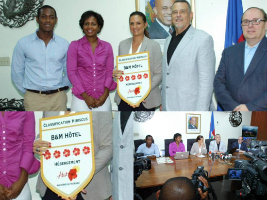 5,000 élèves sensibilisés au développement Touristique Nord Jeudi, dans le cadre de la stratégie du Bureau Régional Nord du Ministère du Tourisme d’inviter la population à contribuer au développement de la Destination Touristique Nord de manière inclusive et durable, Mme Dieudonne Luma la Directrice Régionale Nord du Ministère en présence de Mme Maryse Noël, Directrice Générale du Ministère du Tourisme et des Industries Créatives, de Justin Metellus, Directeur du Ministère de l’Éducation Nationale et de l’Archevêque Métropolitain du Cap-Haitien, M. Monseigneur Louis Kébreau, a organisé au Gymnasium du Champs de Mars de Cap-Haïtien, a organisé un grand forum de sensibilisation à l’intention de plus de 5,000 élèves des Classes de Rhéto et de Philo des Communes de Cap-Haïtien, de Milot, de la Plaine du Nord, de Limbé, de Limonade, de l’Acul du Nord et de la Grande-Rivière du Nord autour du thème « S’impliquer pour contribuer efficacement au développement de la Destination touristique Nord ! » Entité indépendante pour la classification des établissements touristiques Mardi, dans le cadre du processus de standardisation des établissements touristiques, Stéphanie Balmir Villedrouin, Ministre du Tourisme et des Industrie Créatives, a annoncé en conférence de Presse, qu’un Protocole d’accord va être signé d’ici le mois de juin avec la Corporation de l’Industrie du Tourisme du Québec (CITQ), en vue de l’ouverture d’une entité indépendante de classification des hôtels en Haïti, « CITQ-Haïti ». Dans le cadre de ce partenariat, les classificateurs haïtiens seront formés sur place par la CITQ qui évaluera les établissements dans différentes régions du pays. La Ministre en a profité pour dévoiler le label de classification des hôtels qui sera affiché à partir de juin 2014, dans toutes les infrastructures hôtelières déjà classées.