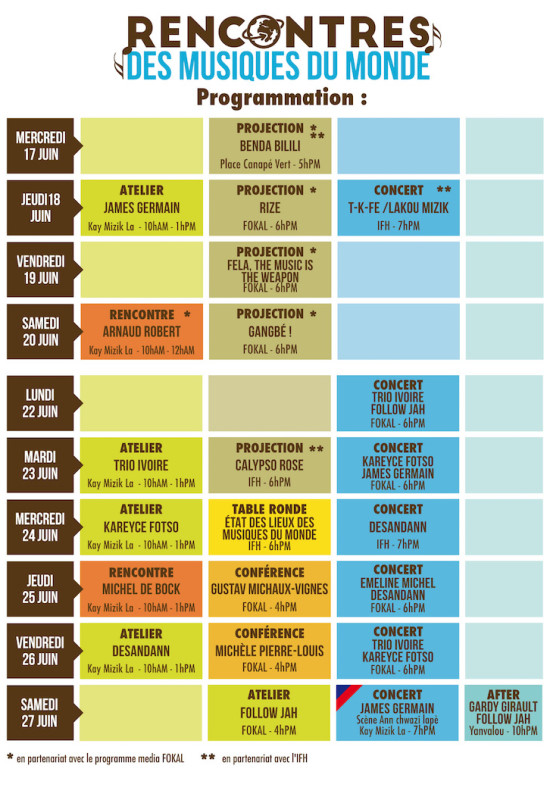 Télécharger le programme : https://www.haitilibre.com/docs/programmation-rencontres-des-musiques-du-monde-details.pdf HL/ HaïtiLibre