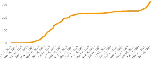 Selon le Ministère de la Santé Publique, 141 nouveaux cas et +3 décès en 24h(précédent 319 cas en 48h) auraient été confirmés le 4 juin 2021 pour un total 15,895 et 333 décès depuis le début de la pandémie. Ce qui porte en date du 4 juin à 2,572 (+5.8%) le nombre de nouveaux cas et à 68 décès (+3) depuis le début de la 3e vague (début mai) (dernières données rendues disponibles par le Ministère). A titre de référence au mois d’avril 2021 (pré-3ème vague) 267 nouveaux cas et 9 morts. avaient été enregistrés. Cas confirmés par département : Ouest : 11,418 (+91) Nord : 958 (+9) Centre : 824 (+1) Artibonite : 781 (+4) Nord-Est : 433 (+14) Sud-Est : 366 (+3) Sud : 346 (+7) Nord-Ouest : 303 (inchangé) Grand'Anse : 297 (+12) Nippes : 169 (inchangé) Haïti : Cas actif depuis le début de la pandémie (moins guérisons et décès) :