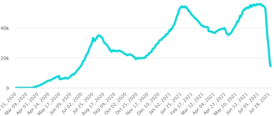 Vaccination : 4,21 millards de doses de vaccin injectées (+30 millions de doses injectées en 24h mis à jour 2 août 2021 dernières données disponibles). HAÏTI : Situation épidémiologique : Selon le Ministère de la Santé Publique, 104 nouveaux cas en 48h de Covid-19 et de ses variants auraient été confirmés en Haïti les 28 et 29 juillet (dernières données partielles disponibles) pour un total de 20,307 cas confirmés sur l’ensemble du territoire national (46% de femmes et 54% hommes), depuis le premier cas (19 mars 2020 https://www.haitilibre.com/article-30319-haiti-sante-origine-des-2-premiers-cas-de-covid-19-en-haiti.html ). Précédente mise à jour (46 cas en 24h le 27 juillet 2021). 3ème vague : En date du 29 juillet 2021 le total de la 3ème vague (début 10 mai 2021) s’élève à 7,002 cas confirmés et 289 décès. Guérisons : 14,724 (+332 en 48h) Taux de guérison : 71,50% (+) Décès : 560 décès +2 en 48h (Ouest +1, Sud +1) Taux de mortalité : 2,75% (-) Haïti : Nombre de décès quotidien :