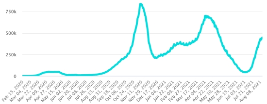 Vaccination : 353,86 millions de doses de vaccin injectées depuis le 14 décembre 2020 date de la première injection aux États-Unis (650,000 doses injectées, en 24h). Mise à jour 12 août dernières données disponibles). RÉPUBLIQUE DOMINICAINE : Cas confirmés depuis le 1er mars 2020 : 345,325 cas (+207 en 24h) la veille (+493). Premier cas (1er mars 2020) https://www.haitilibre.com/article-30165-haiti-flash-premier-cas-de-covid-19-en-republique-dominicaine.html Guérisons : 334,863 guérisons depuis le 1er mars (+1,841 en 24h), la veille (+4,333 en 48h) Taux national de Guérison : 96,97% (+) Décès : 3,976 décès (+1 en 24h), la veille (+1 en 48h) Taux de mortalité : 1,15% (=) Cas actifs : (excluant décès et guérisons) 6,486 cas (-1,635 en 24h) la veille (-3,841 en 48h) République Dominicaine : Tendance cas actifs : (moins guérisons et décès)