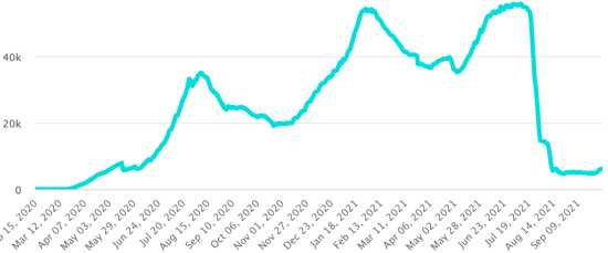 Vaccination : 6,36 millards de doses de vaccin injectées (+30 millions de doses injectées en 24h. Mise à jour 4 octobre 2021 (dernières données disponibles). HAÏTI : Situation épidémiologique : Selon le Ministère de la Santé Publique, +148 nouveaux cas en 48h de Covid-19 et de ses variants auraient été confirmés en Haïti le 29-30 septembre 2021 (dernières données partielles disponibles) pour un total de 22,273 cas confirmés sur l’ensemble du territoire national (46.5% de femmes et 53.5% hommes), depuis le premier cas (19 mars 2020 https://www.haitilibre.com/article-30319-haiti-sante-origine-des-2-premiers-cas-de-covid-19-en-haiti.html ). Précédente mise à jour (+153 cas les 27-28 septembre). Guérisons : 19,779 (+92 en 48h) Taux de guérison : 89,39% (-) Décès : 629 décès +7 en 48h (Ouest + 3, Centre +4) Taux de mortalité : 2,84% (+) Haïti : Tendance des décès :