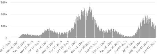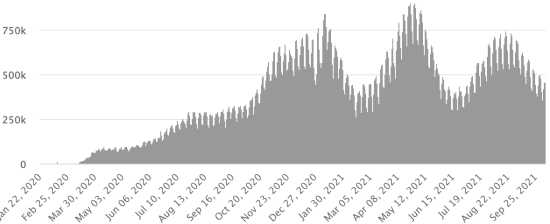 SITUATION MONDIALE : Situation épidémiologique : Vendredi 8 octobre 2021 le nombre de personnes contaminées dans le monde par le coronavirus Covid-19 depuis le début de la pandémie (Source officielle), s’élève à 237,583,938 cas (+464,105 en 24h), la veille (+488,870) Nombre de pays contaminés : 221 *Guérisons : 214,669,447 personnes ont été guéries du Covid-19 dans le monde (+ 392,895 en 24h), la veille (+ 526,323) *Décès : 4,849,854 personnes sont mortes du Covid-19 dans le monde (+8,506 en 24h), la veille (+9,153) *Cas actifs (moins décès et guérisons) dans le monde est actuellement de 18,064,637 cas (+62,704 en 24h), la veille (-46,706) Taux moyen de guérison au monde : 90,35% (-) Taux moyen de mortalité au monde : 2,04% (=) Monde : Nombre de cas confirmés quotidiens :