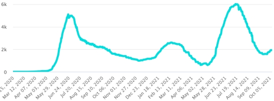 Vaccination : 401,82 millions de doses de vaccin injectées depuis le 14 décembre 2020 date de la première injection aux États-Unis (1,15 millions de doses injectées, en 24h). Mise à jour 9 octobre 2021 (dernières données disponibles).