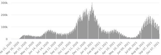 *Cas depuis le premier cas (9 mars 2020) : 45,179,209 cas (+43,589 en 24h), la veille (+114,353)