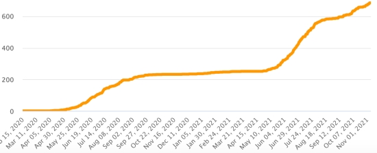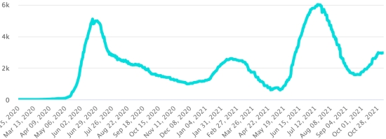 Le total de la 3ème vague (début 20 septembre 2021) s’élève à 2,527 cas confirmés et 82 décès. Mise à jour 28 octobre 2021.