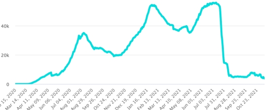 Vaccination : 7,41 millards de doses de vaccin injectées (+50 millions de doses injectées en 24h. Mise à jour 11 novembre 2021 (dernières données disponibles). HAÏTI : Situation épidémiologique : Selon le Ministère de la Santé Publique, +73 nouveaux cas en 24h de Covid-19 et de ses variants auraient été confirmés en Haïti le 5 novembre 2021 (dernières données partielles disponibles) pour un total de 24,359 cas confirmés sur l’ensemble du territoire national (47.1% de femmes et 52.9% hommes), depuis le premier cas (19 mars 2020 https://www.haitilibre.com/article-30319-haiti-sante-origine-des-2-premiers-cas-de-covid-19-en-haiti.html ). Précédente mise à jour (+53 cas le 4 novembre). Guérisons : 20,587 (+13 en 24h) Taux de guérison : 84,51% (-) Décès : 705 décès +3 en 24h (Ouest +3 ) Taux de mortalité : 2,89% (=) Haïti : Tendance des décès :