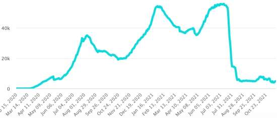 Vaccination : 7,56 millards de doses de vaccin injectées (+20 millions de doses injectées en 24h. Mise à jour 16 novembre 2021 (dernières données disponibles). HAÏTI : Situation épidémiologique : Selon le Ministère de la Santé Publique, +59 nouveaux cas en 24h de Covid-19 et de ses variants auraient été confirmés en Haïti le 11 novembre 2021 (dernières données partielles disponibles) pour un total de 24,694 cas confirmés sur l’ensemble du territoire national (47.1% de femmes et 52.9% hommes), depuis le premier cas (19 mars 2020 https://www.haitilibre.com/article-30319-haiti-sante-origine-des-2-premiers-cas-de-covid-19-en-haiti.html ). Précédente mise à jour (+36 cas le 10 novembre). Guérisons : 20,722 (+19 en 24h) Taux de guérison : 83,91% (-) Décès : 711 décès +3 en 24h (Ouest+3) Taux de mortalité : 2,87% (=) Haïti : Tendance des décès :