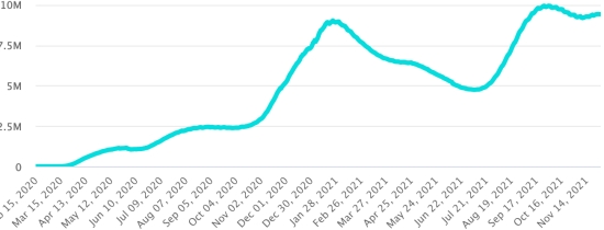 Vaccination : 460,77 millions de doses de vaccin injectées depuis le 14 décembre 2020 date de la première injection aux États-Unis (1,54 millions de doses injectées en 24h). Mise à jour 30 novembre 2021 (dernières données disponibles). RÉPUBLIQUE DOMINICAINE : Cas confirmés depuis le 1er mars 2020 : 407,251 cas (+138 en 24h) la veille (+310). Premier cas (1er mars 2020) https://www.haitilibre.com/article-30165-haiti-flash-premier-cas-de-covid-19-en-republique-dominicaine.html Guérisons : 399,896 guérisons depuis le 1er mars (+433 en 24h), la veille (+25) Taux national de Guérison : 98,19% (+) Décès : 4,204 décès (+0 en 24h), la veille (+0) Taux de mortalité : 1,03% (=) Taux de positivité sur 4 semaines épidémiologiques : 7,40% (-) Cas actifs : (excluant décès et guérisons) 3,151 cas (-295 en 24h) la veille (+285) TOP 5 des provinces ayant le plus de nouveaux cas les dernières 24h : District Nacional : +56 cas (-) Santo Domingo : +46 cas (-) Santiago : +10 cas (-) La Vega : +6 cas Puerto Plata : + 6 cas République Dominicaine : Tendance cas actifs : (moins guérisons et décès)