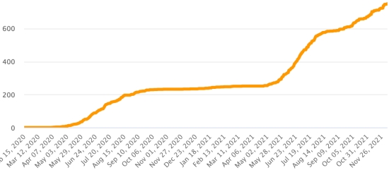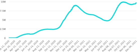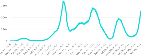 SITUATION MONDIALE : Situation épidémiologique : Mardi 7 décembre 2021 le nombre de personnes contaminées dans le monde par le coronavirus Covid-19 depuis le début de la pandémie (Source officielle), s’élève à 266,774,650 cas (+634,075 en 24h), la veille (+410,197) Nombre de pays contaminés : 221 *Guérisons : 240,405,169 personnes ont été guéries du Covid-19 dans le monde (+626,020 en 24h), la veille (+345,597) *Décès : 5,279,089 personnes sont mortes du Covid-19 dans le monde (+7,718 en 24h), la veille (+6,884) *Cas actifs (moins décès et guérisons) dans le monde est actuellement de 21,090,392 cas (+437 en 24h), la veille (+57,716) Taux moyen de guérison au monde : 90,11% (+) Taux moyen de mortalité au monde : 1,97% (-) Monde : Nombre de cas confirmés quotidiens :