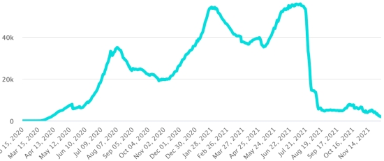 Vaccination : 471,7 millions de doses de vaccin injectées depuis le 14 décembre 2020 date de la première injection aux États-Unis (1,4 millions de doses injectées en 24h). Mise à jour 6 décembre 2021 (dernières données disponibles). RÉPUBLIQUE DOMINICAINE : Cas confirmés depuis le 1er mars 2020 : 408,748 cas (+232 en 24h) la veille (+271) . Premier cas (1er mars 2020) https://www.haitilibre.com/article-30165-haiti-flash-premier-cas-de-covid-19-en-republique-dominicaine.html Guérisons : 402,627 guérisons depuis le 1er mars (+436 en 24h), la veille (+475) Taux national de Guérison : 98,50% (+) Décès : 4,212 décès (+0 en 24h), la veille (+0) Taux de mortalité : 1,03% (=) Taux de positivité sur 4 semaines épidémiologiques : 6,50% (-) Cas actifs : (excluant décès et guérisons) 1,909 cas (-204 en 24h) la veille (-204) TOP 5 des provinces ayant le plus de nouveaux cas les dernières 24h : Santiago : +85 cas (+) Valverde : +33 cas District Natcional : +13 cas (-) Espaillat : +12 cas (=) Santo Domingo : +10 cas (-) République Dominicaine : Tendance cas actifs : (moins guérisons et décès)